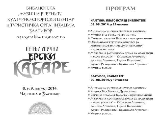 Библиотека "Љубиша Р. Ђенић", у сарадњи са Културно - спортским центром Чајетина и библиотеком Специјалне болнице "Чигота", у петак, 12. септембра 2014. године, приредила је поетско вече под називом "Сећање на Ћупа" поводом деценије од смрти нашег значајног завичајног песника и драмског писца, Михаила Ћуповића.