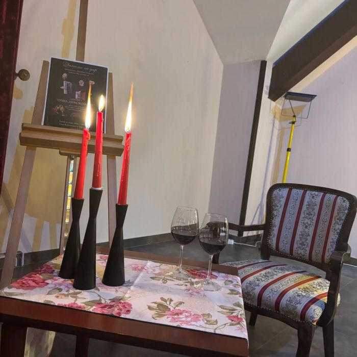 Трио чини следећи састав: Милан Јовић (виолина), Душан Сарић (клавир/клавијатуре) и Стефан Белоица (хармоника). Добро су познати нашој публици, с обзиром да су више пута били наши драги гости. Изводе најпознатије нумере џез, поп, рок, танго, филмске и изворне музике, у акустичној обради и уз дозу импровизације. Тиме је њихов аранжман несвакидашњи, освежавајући и оригиналан.