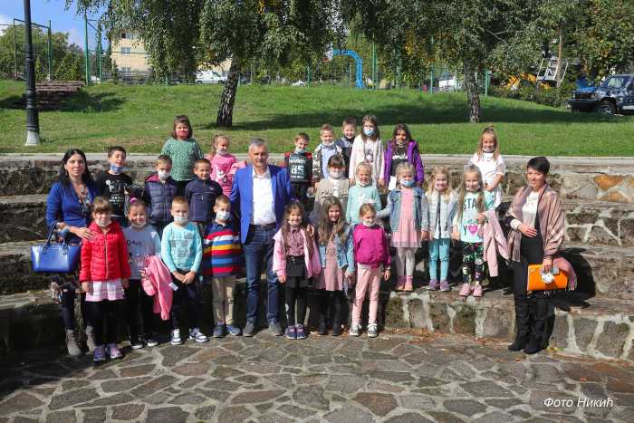 Општина Чајетина, на челу са председником Миланом Стаматовићем је деци уручила по пет хиљада динара, такође са жељама за срећан полазак у школу.