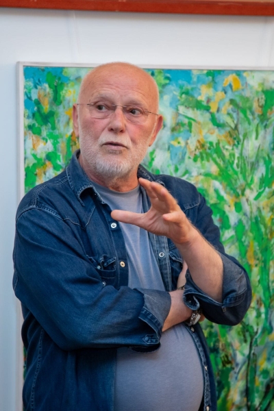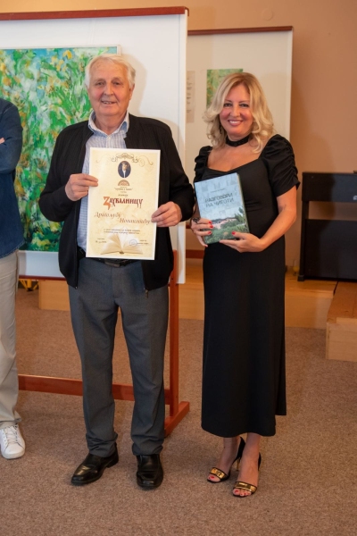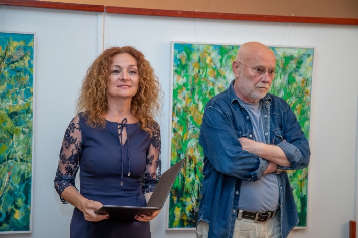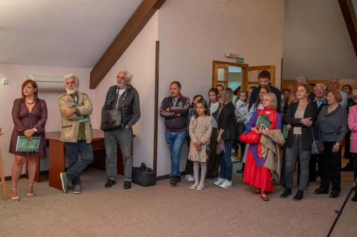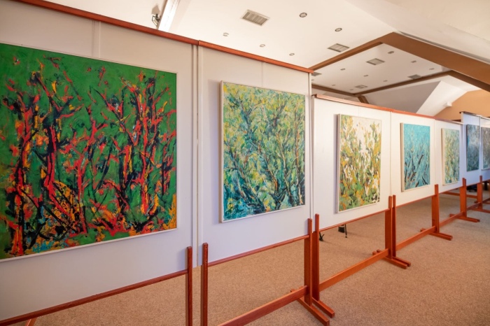 Овом приликом отворена је изложба слика из циклуса „Крошње“ (2014-2016), аутора Владана Терзића, академског сликара. Терзић, рођен 1953. године у Београду, цео свој радни и животни век провео је у Ужицу и околини. Након завршене Више педагошке школе, завршио је Академију уметности у Новом Саду, сликарство код профестора Душана Тодоровића, цртање код професора Милана Блануше. До сада је имао тридесетак самосталних изложби, а учесник је великог броја колективних изложби од којих су најзначајније у Шибенику, Ријеци, Београду, Јоханесбургу, Подгорици, Ужицу, Крушевцу, Чачку…Међу ретким уметницима који се баве пејзажима излагао је и у Галерији Улуса, а 2008. и у Галерији РТС. „Природа је мотив целог мог живота у мом стваралаштву, било да се ради о класичним пејзажима, али увек експресивним, чак и апстрактним. У том сам ишао и у неко истраживање са белинама на папиру, са овим крошњама, што је опет део пејзажа. То су, у ствари, слике детињства. 1973. године је била моја прва изложба у Ужицу у позоришту, а ево се сад јубилеј се уклапа и са 70 година живота, и драго ми је да сам то , ето, обележио у овој предивној библиотеци“, рекао је сликар.