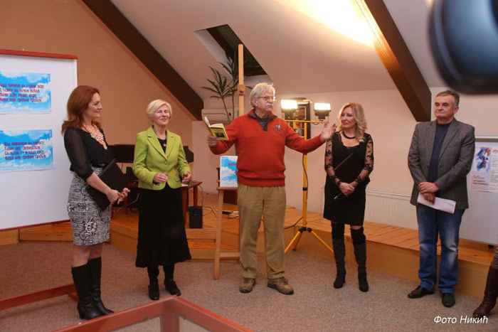 Изложбу је отворила мр Гордана Блум која је говорила о Љубивоју Ршумовићу нагласивши да је он велики пријатељ и да о својим пријатељима много брине, ништа га не мрзи, када га повуче надахнуће песме одмах мора да забележи.
